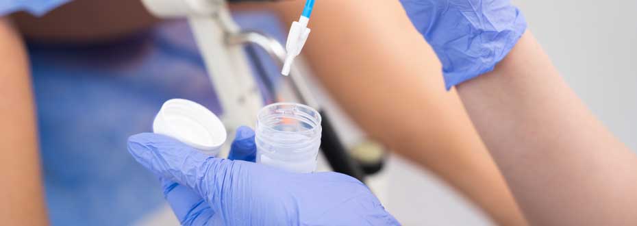 子宮体がん検診:子宮の奥に器具を挿入して、子宮内部の細胞を採取します。細胞の見え方に異常がないか調べます。
